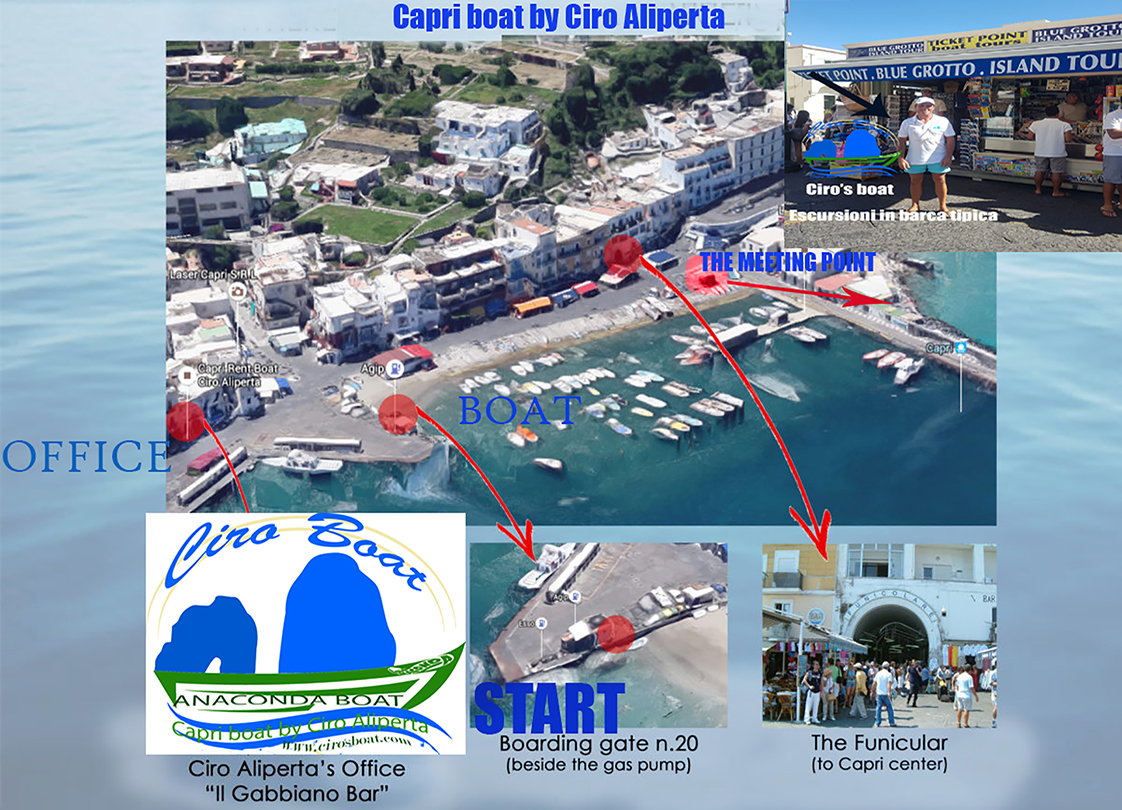 "Classic tour: "Giro dell'isola di Capri durata due ore e 15 minuti". Con la barca tradizionale "gozzo" comoda e sicura. Ciro con la sua simpatia e cortesia vi porterà a scoprire le bellezze di Capri dal mare. Questa escursione non prevede la fermata alla grotta azzurra, ma una sosta per un tuffo nel mare azzurro.Oltre a vedre i faraglioni. Ci vediamo al porto di Capri nei pressi della stazione taxi.Ciro Aliperta vi aspetta nell'edicola dei giornali.